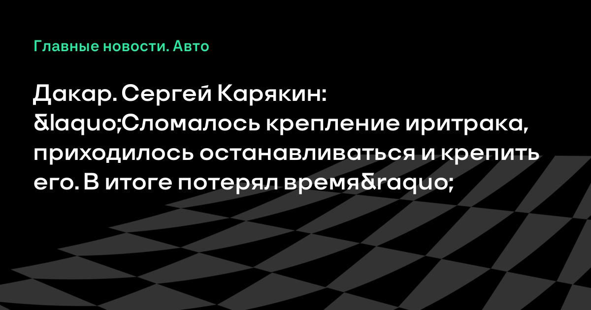 «Есть финиш! Сегодня 3-й, по итогам трех этапов 2-й результат с отставанием от лидера 32 минуты. Сломалось крепление иритрака (иритрак – спутниковый телефон, который позволяет организаторам следить за участником соревнований на маршруте – прим. Sports.ru), приходилось останавливаться и крепить его. В итоге потерял время», – написал Карякин на своей странице в фейсбуке.