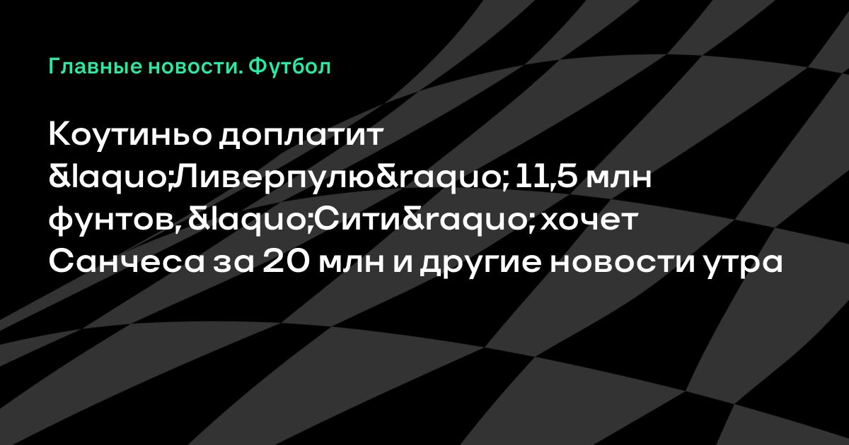 Коутиньо доплатит «Ливерпулю» 11,5 млн фунтов, «Сити» хочет Санчеса за 20 млн и другие новости утра