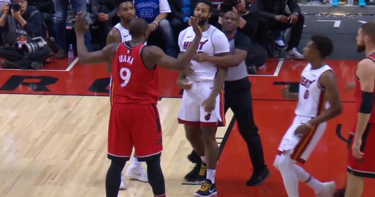 Серж Ибака («Торонто») и Джеймс Джонсон («Майами») были удалены с площадки за стычку в третьей четверти матча. Форварды успели обменяться ударами до того, как вмешался арбитр.