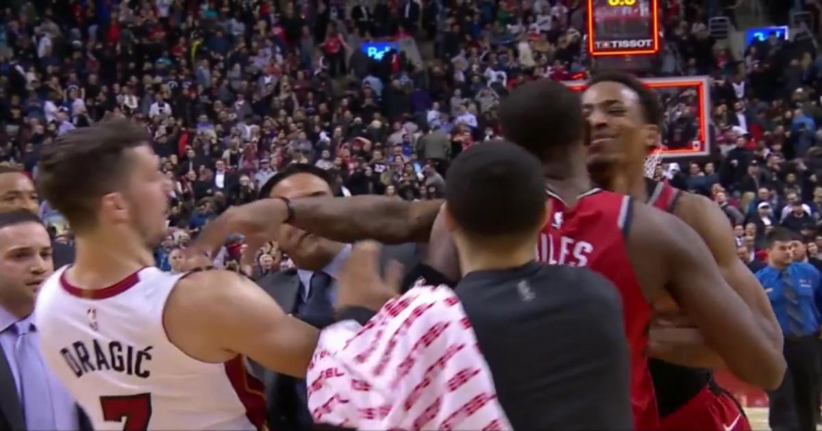 Между Демаром Дерозаном и Гораном Драгичем после окончания матча поизошла стычка