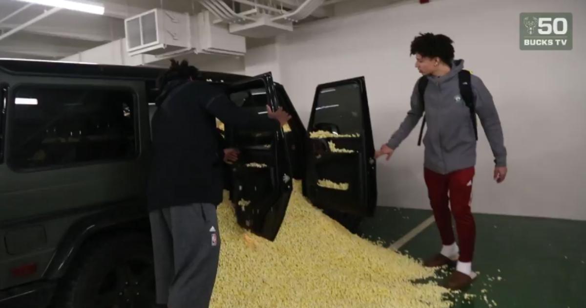 Яннис Адетокумбо и «Бакс» наполнили автомобиль Стерлинга Брауна попкорном