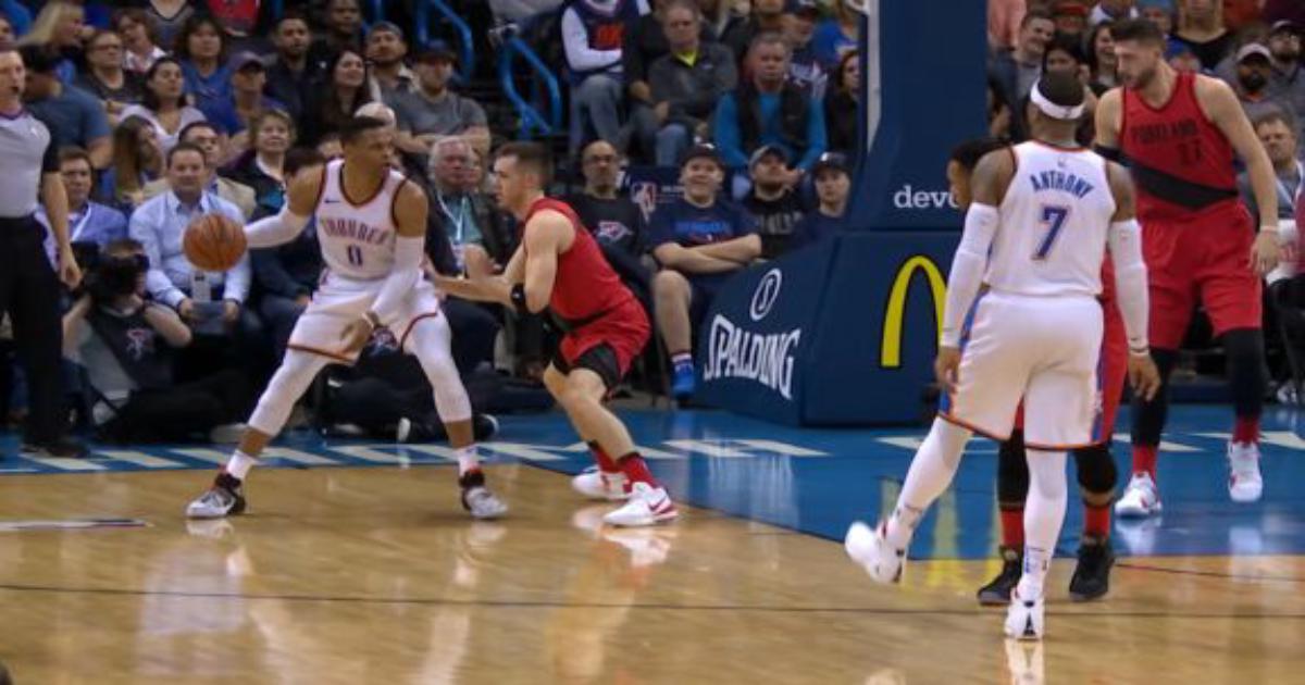10 января 2018, 12:39 Расселл Уэстбрук отдал «слепой» пас, Пол Джордж забил сверху Разыгрывающий «Тандер» Расселл Уэстбрук – автор лучшей передачи игрового дня в НБА. ВИДЕО Баскетбол НБА Баскетбол - видео Расселл Уэстбрук Оклахома-Сити Пол Джордж