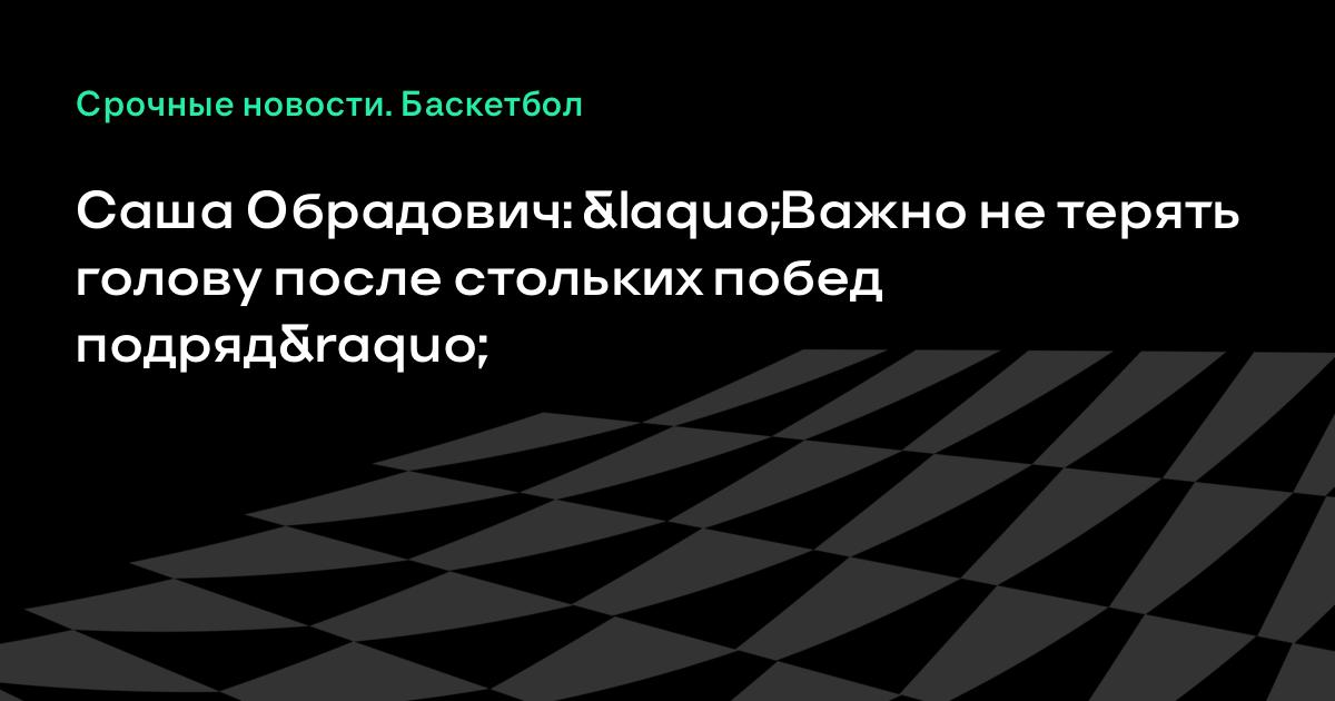 Саша Обрадович: «Важно не терять голову после стольких побед подряд»