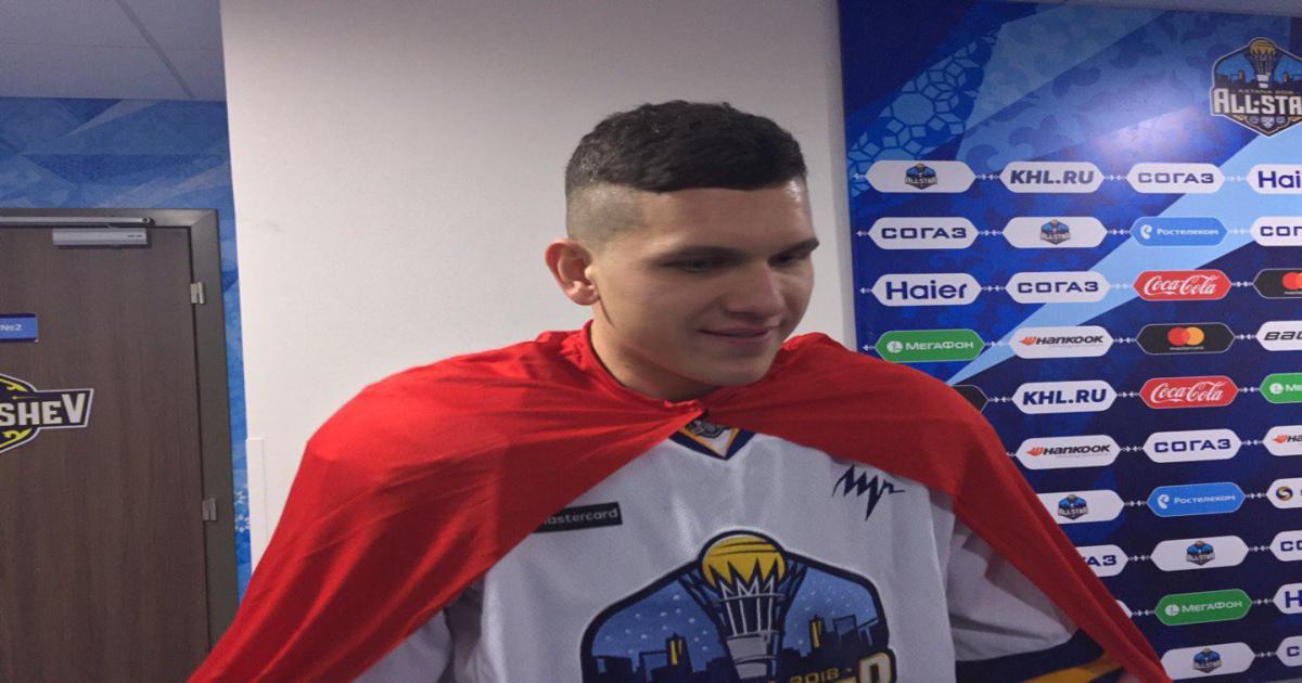 – Мы думали с нашим пресс-атташе над тем, что можно интересного сделать на Матч звезд. Во-первых, это не супермен, а сочимен. Это два разных супергероя. Надеюсь, всем понравился костюм.
