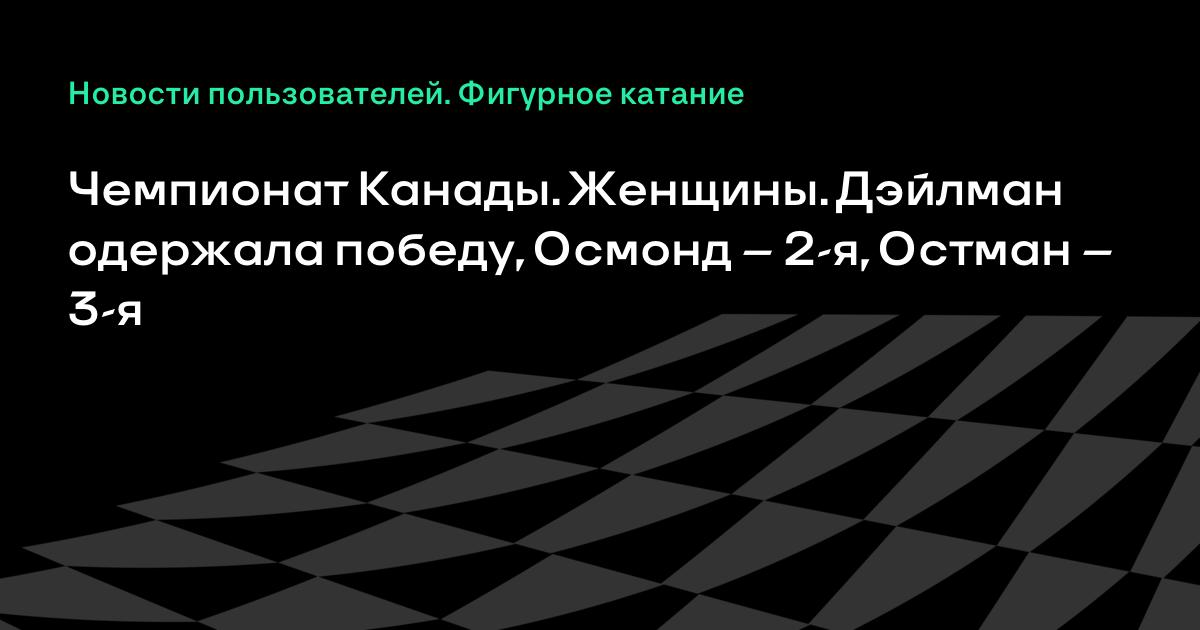 Чемпионат Канады. Женщины. Дэйлман одержала победу, Осмонд – 2-я, Остман – 3-я