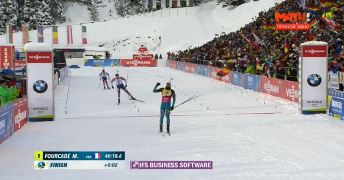 Французский биатлонист Мартен Фуркад одержал победу в гонке с общего старта на шестом этапе Кубка мира в итальянском Антхольце. Россиянин Антон Шипулин финишировал 9-м.