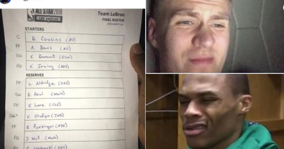 Капитан звездной команды Леброн Джеймс неправильно написал фамилии Расселла Уэстбрука и Кристапса Порзингиса в итоговой заявке на Матч звезд.