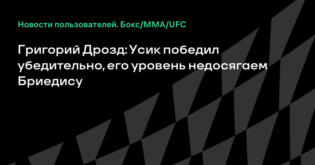 Дрозд констатировал, что латвиец мог подстроиться под манеру Усика. «Ты вроде идешь на соперника, давишь, а тебе бьют навстречу, а что с этим делать, Бриедис так и не понял. Для меня это была очень убедительная, красивая победа Усика. Правда, я не понял, как один судья поставил ничью. Усик победил в великолепном стиле без больших потерь. Мой прогноз сбылся – Усик победил по очкам», — добавил собеседник агентства.