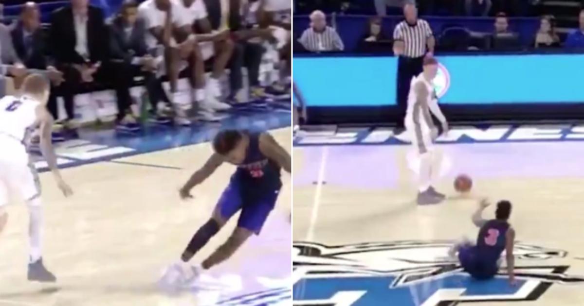 В матче NCAA между Мидл Теннесси Стэйт и Техас-Эль Пасо состоялся эффектный кроссовер, который привел к падению игрока на площадку.