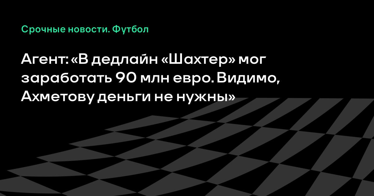 Агент: «В дедлайн «Шахтер» мог заработать 90 млн евро. Видимо, Ахметову деньги не нужны»
