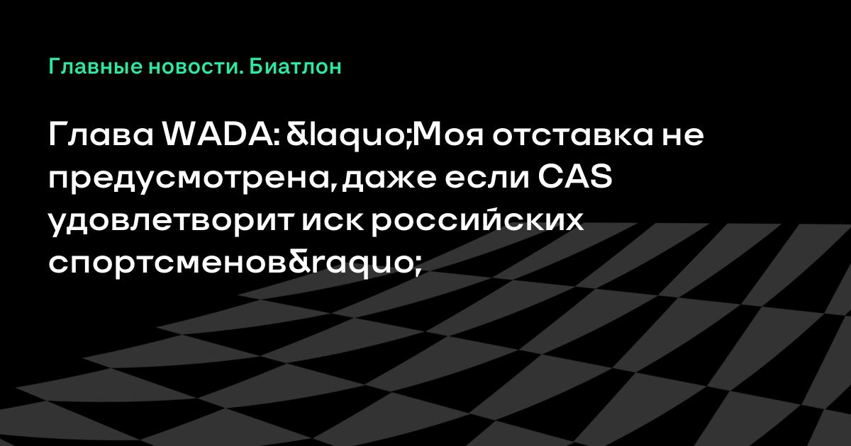 Глава WADA: «Моя отставка не предусмотрена, даже если CAS удовлетворит иск российских спортсменов»