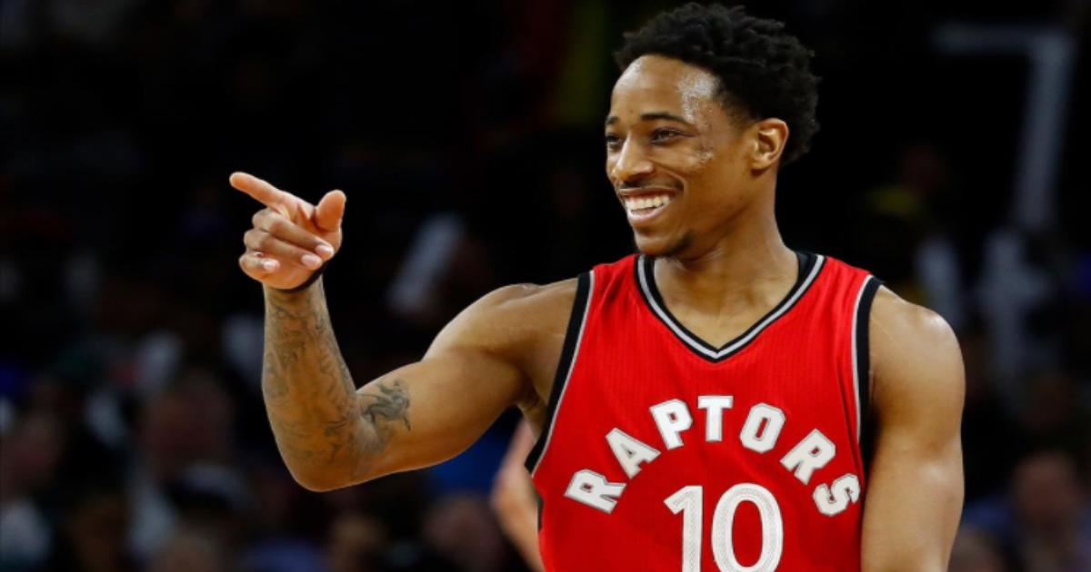 Демар Дерозан за счет показа ушел от двух соперников и забил с сиреной