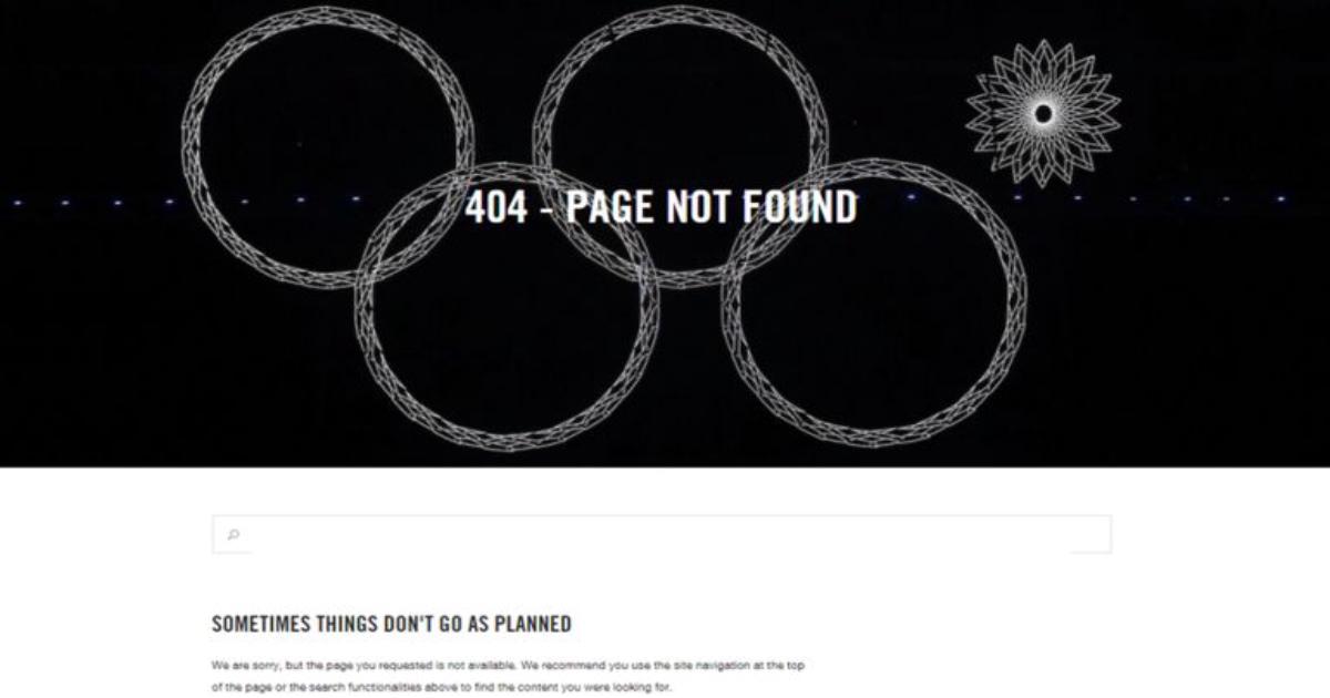 «Иногда все идет не так, как запланировано», – такую надпись теперь видит пользователь Olympic.org при переходе на несуществующую страницу.
