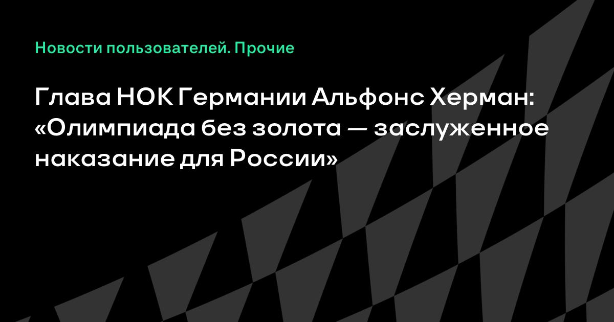 Глава НОК Германии Альфонс Херман: «Олимпиада без золота — заслуженное наказание для России»