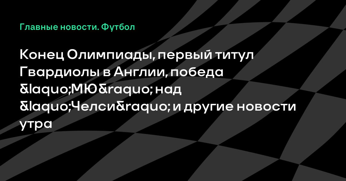 Конец Олимпиады, первый титул Гвардиолы в Англии, победа «МЮ» над «Челси» и другие новости утра