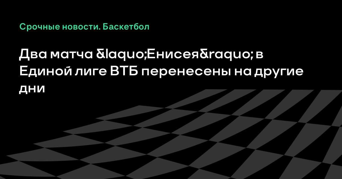 Матчи «Енисея» с санкт-петербургским «Зенитом» и эстонским «Калевом» в регулярном чемпионате Единой лиги ВТБ перенесены на другие дни, информирует официальный сайт красноярского клуба.