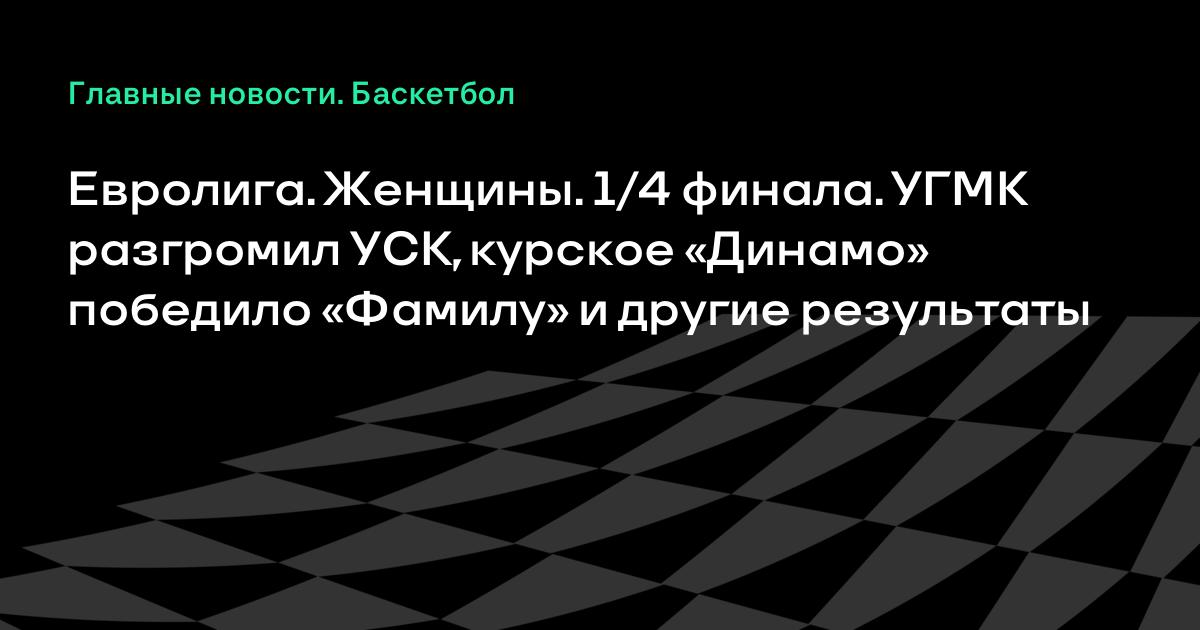 Евролига. Женщины. 1/4 финала. УГМК разгромил УСК, курское «Динамо» победило «Фамилу» и другие результаты