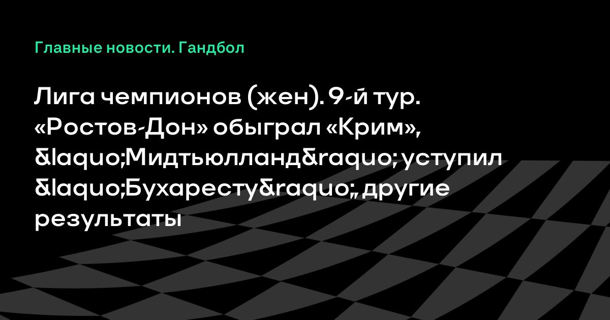 Завершились матчи 9-го тура основного раунда женской Лиги чемпионов по гандболу. «Ростов-Дон» обыграл «Крим» из Словении (35:26).