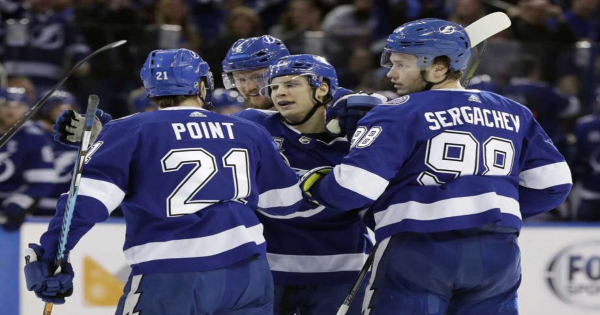 Защитник «Тампы» Михаил Сергачев сделал 2 голевые передачи в матче с «Рейнджерс» (5:3).