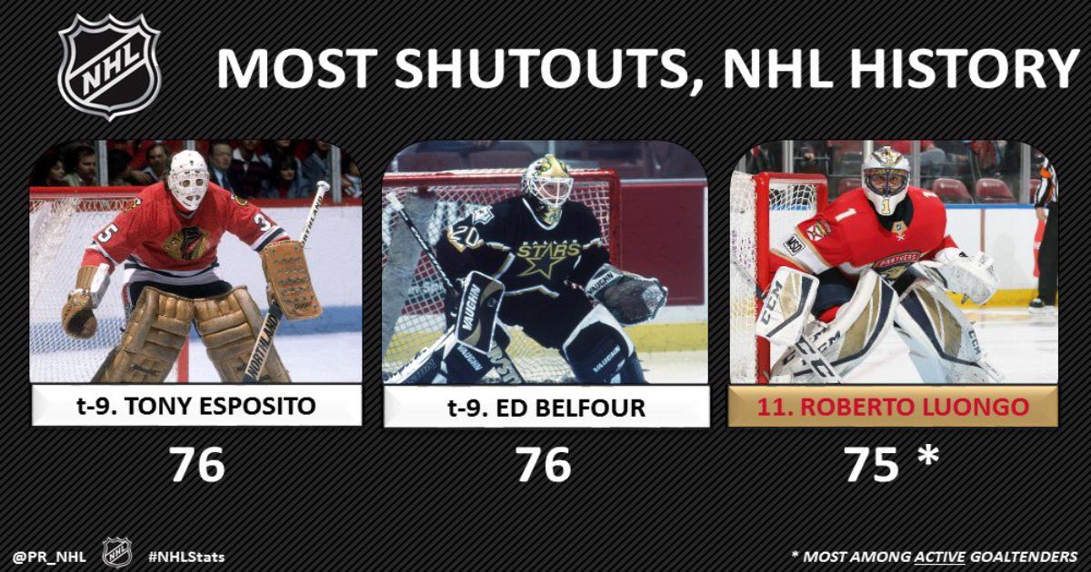 По их количеству в истории лиги он занимает 11-е место. Чтобы войти в топ-10, ему нужно опередить Тони Эспозито и Эда Белфора, которые делят 9-е место с 76 сухими матчами.