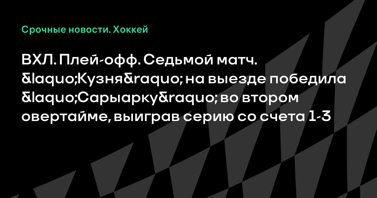 ВХЛ. Плей-офф. Седьмой матч. «Кузня» на выезде победила «Сарыарку» во втором овертайме, выиграв серию со счета 1-3