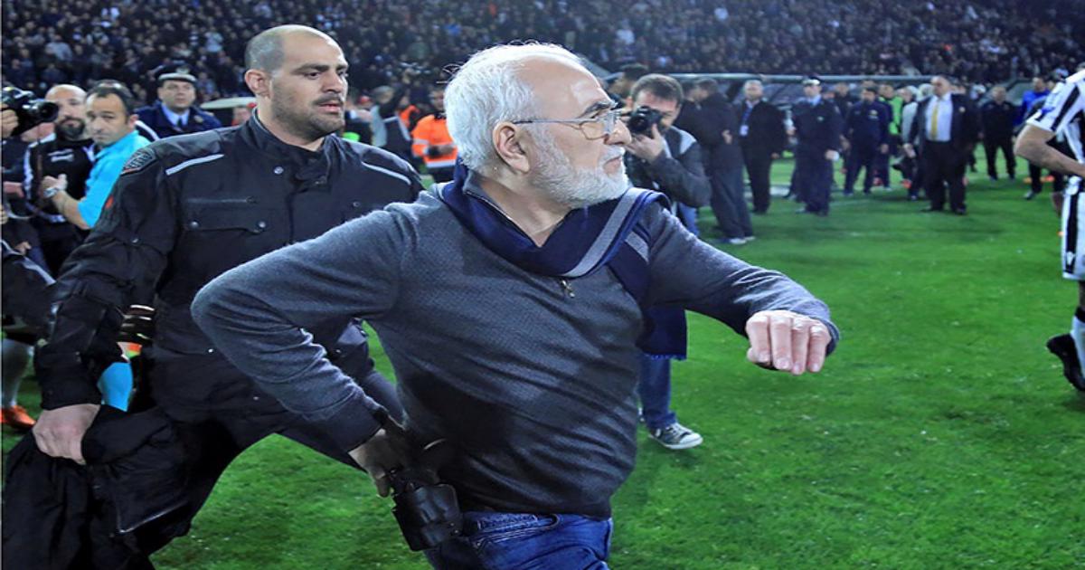 Президент ПАОК во время матча чемпионата Греции с АЕК выбежал на поле с пистолетом и угрожал судье. 58-летнему россиянину не понравилось решение арбитра.
