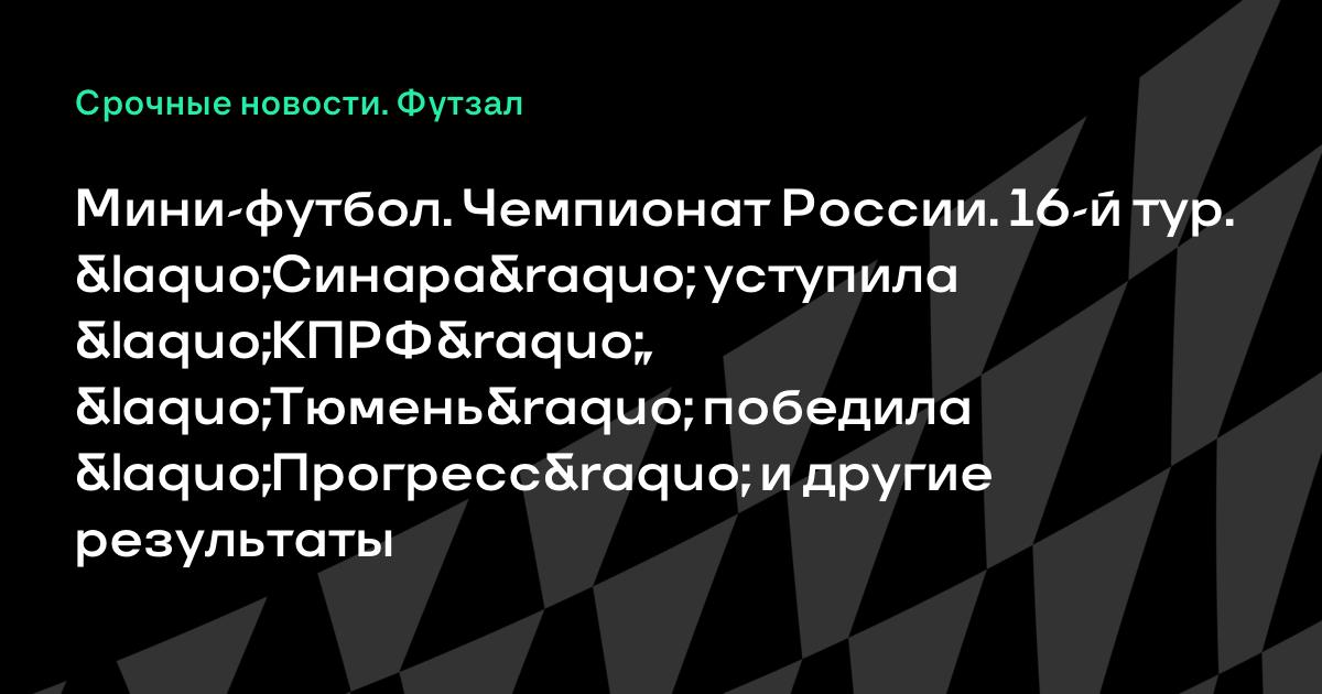 Мини-футбол. Чемпионат России. 16-й тур. «Синара» уступила «КПРФ», «Тюмень» победила «Прогресс» и другие результаты
