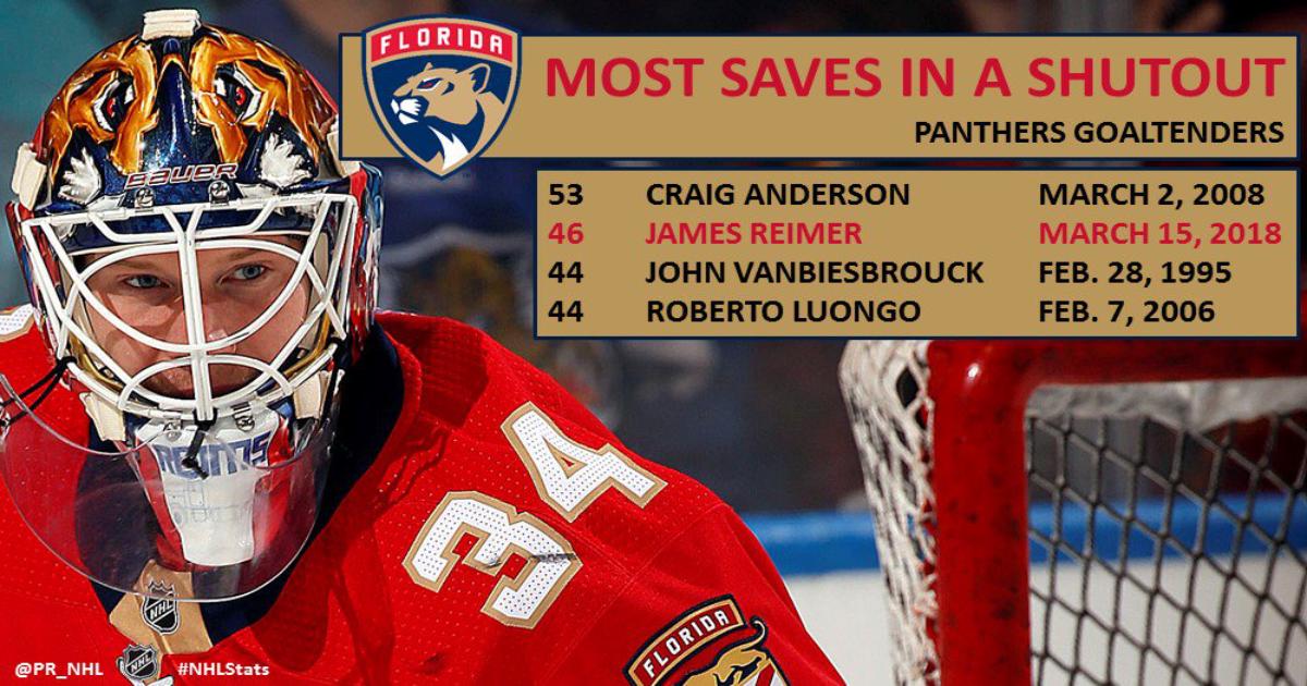 Канадец отразил 46 бросков из 46. Это второй результат в истории «Пантерс» по количеству сэйвов при шатауте.