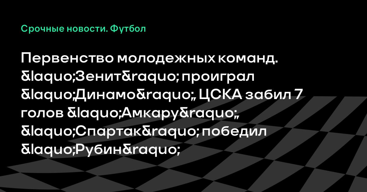 Первенство молодежных команд. «Зенит» проиграл «Динамо», ЦСКА забил 7 голов «Амкару», «Спартак» победил «Рубин»