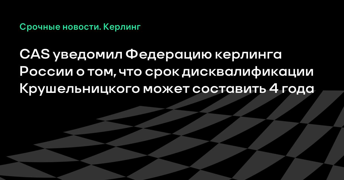 Президент Федерации керлинга России (ФКР) Дмитрий Свищев сообщил, что Спортивный арбитражный суд (CAS) прислал уведомление о сроках возможной дисквалификации Александра Крушельницкого.