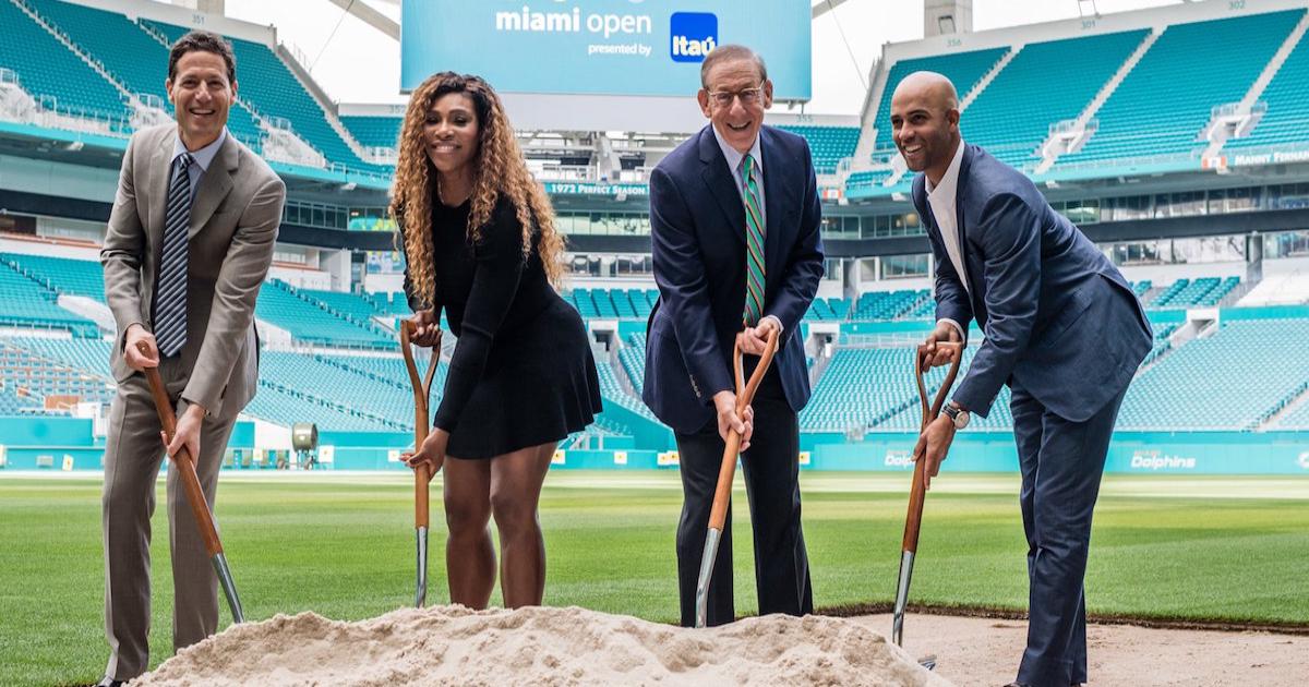 Ground breaking for the future home of the Miami Open @HardRockStadium @serenawilliams James Blake, & Dolphins majority owner Stephen Ross pic.twitter.com/WqUhE619NX