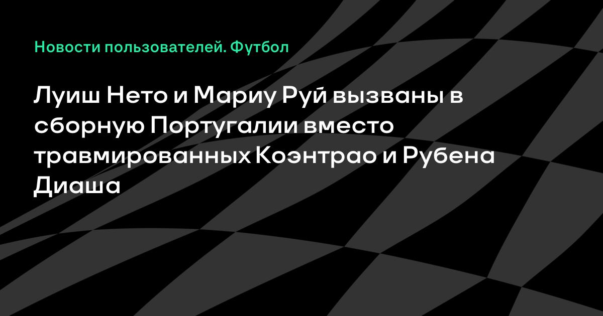 Луиш Нето и Мариу Руй вызваны в сборную Португалии вместо травмированных Коэнтрао и Рубена Диаша