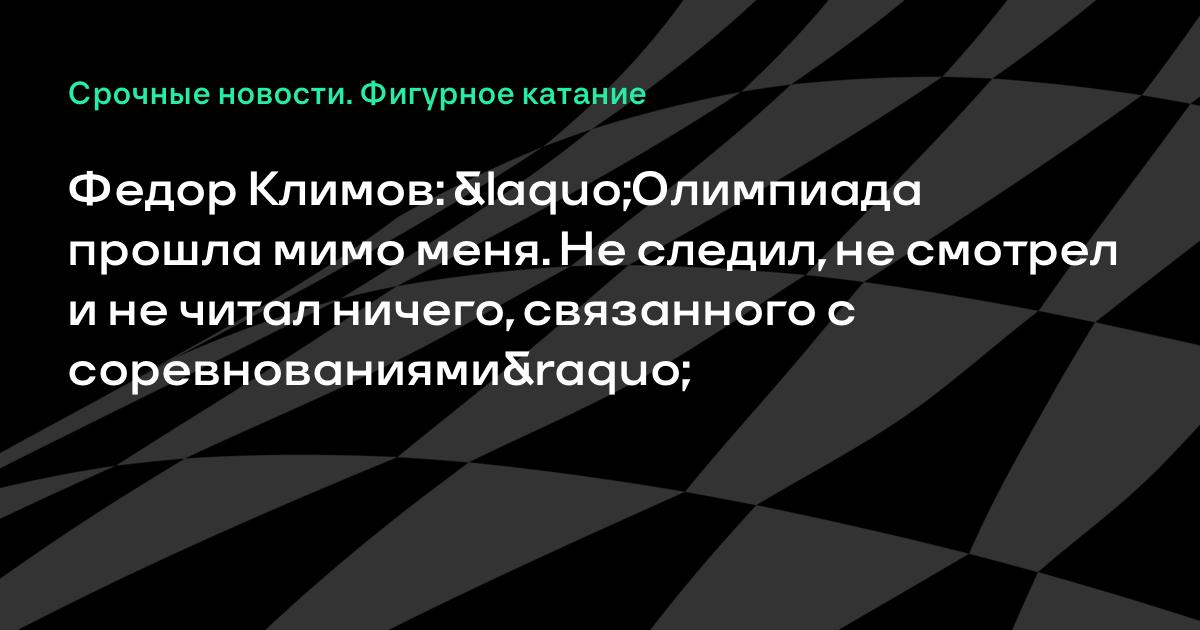 Федор Климов: «Олимпиада прошла мимо меня. Не следил, не смотрел и не читал ничего, связанного с соревнованиями»