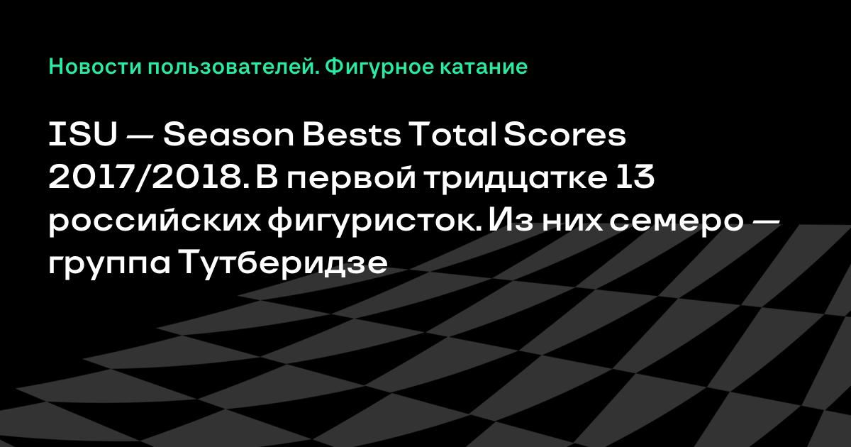 ISU — Season Bests Total Scores 2017/2018. В первой тридцатке 13 российских фигуристок. Из них семеро — группа Тутберидзе