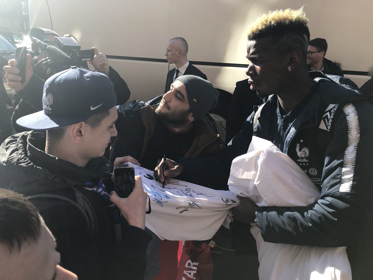 Игроки команды Поль Погба и Килиан Мбаппе встретились рядом с отелем с французскими болельщиками, приехавшими на игру, фотографировались с ними и раздавали автографы.