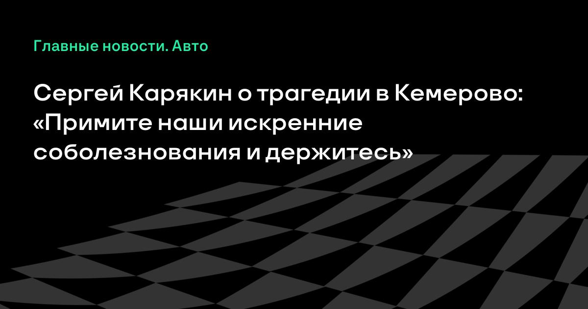 Российский раллийный гонщик Сергей Карякин выразил соболезнования родственникам погибших в пожаре в торговом центре «Зимняя вишня» в Кемерово.