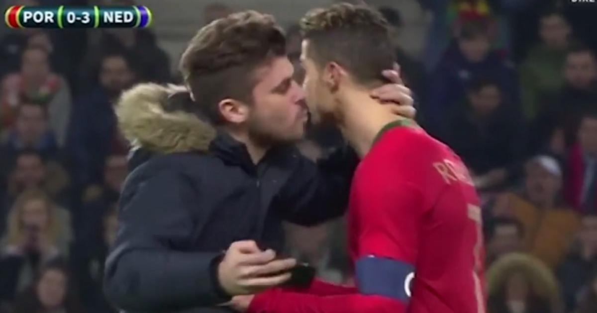 Португалия – Голландия. Выбежавший на поле болельщик поцеловал Роналду