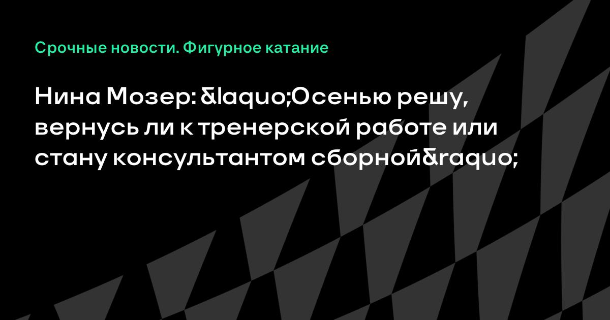 Я беру тайм-аут на полгода. При этом я планирую приходить к ребятам на тренировки, помогать им, консультировать, но это уже не будет та безумная жизнь, которая была у меня последние 8 лет. Осенью станет ясно, захочу ли я еще раз пройти все это или буду просто помогать спортсменам, являясь консультантом», – рассказала Мозер во время пресс-конференции ТАСС.