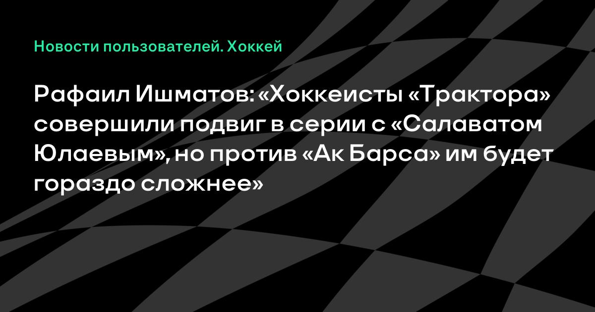 Бывший главный тренер «Салавата Юлаева», СКА и молодежной сборной России Рафаил Ишматов прокомментировал предстоящий финал Восточной конференции Кубка Гагарина между казанским «Ак Барсом» и челябинским «Трактором».