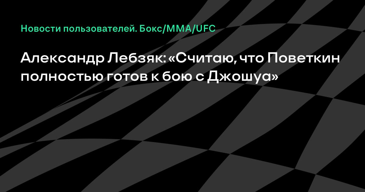 Олимпийский чемпион, экс-тренер сборной России по боксу Александр Лебзяк считает, что Александр Поветкин готов провести поединок с непобежденным британским боксером Энтони Джошуа.