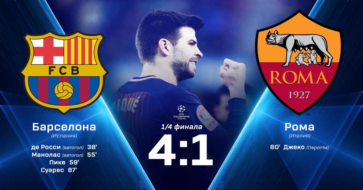 В первом матче 1/4 финала Лиги чемпионов «Барселона» разгромила «Рому» (4:1).