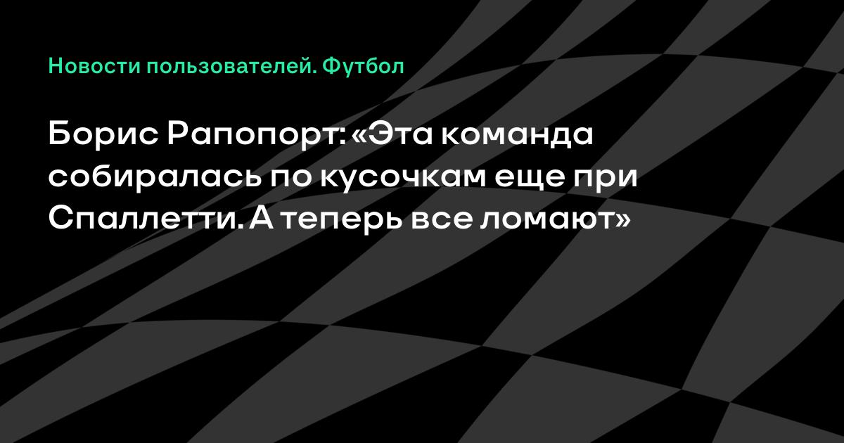 Борис Рапопорт: «Эта команда собиралась по кусочкам еще при Спаллетти. А теперь все ломают»