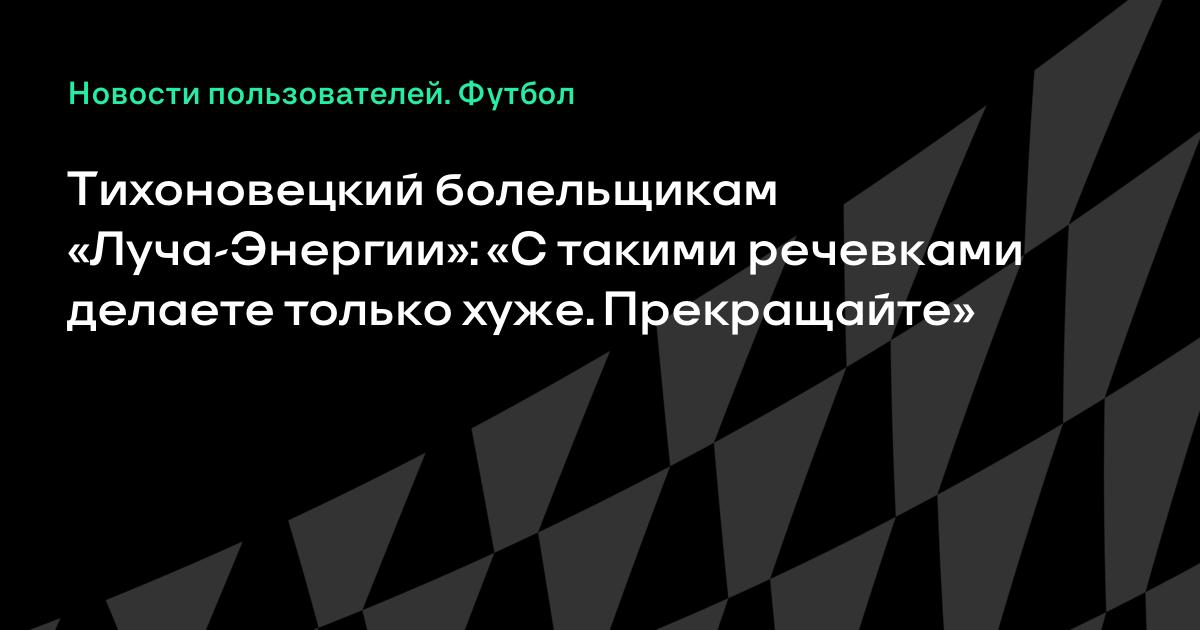 Команда сейчас в такой ситуации нуждается в сплоченности и большой поддержке, а с таким поведением и речевками вы делаете только хуже всем. Мне звонят многие и спрашивают, почему так происходит, и что это вообще такое? Прошу болельщиков прекратить кричать такие вещи в сторону тренера, а кричать в сторону команды «Луч-Энергия» слова поддержки»