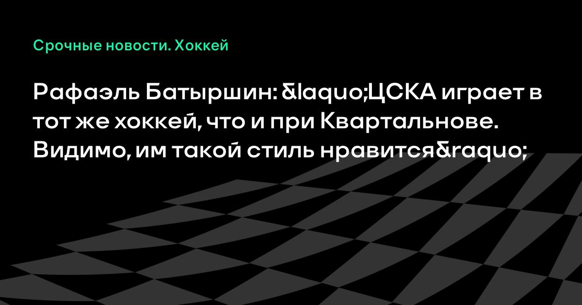 Рафаэль Батыршин: «ЦСКА играет в тот же хоккей, что и при Квартальнове. Видимо, им такой стиль нравится»