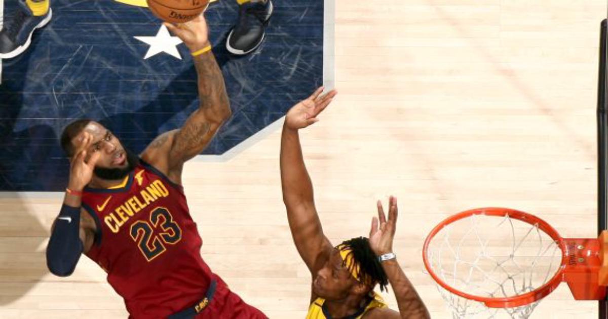 Форвард «Кавальерс» Леброн Джеймс ушел от бигмена «Пэйсерс» Майлза Тернера с помощью спин-мува и завершил проход попаданием из-под кольца.