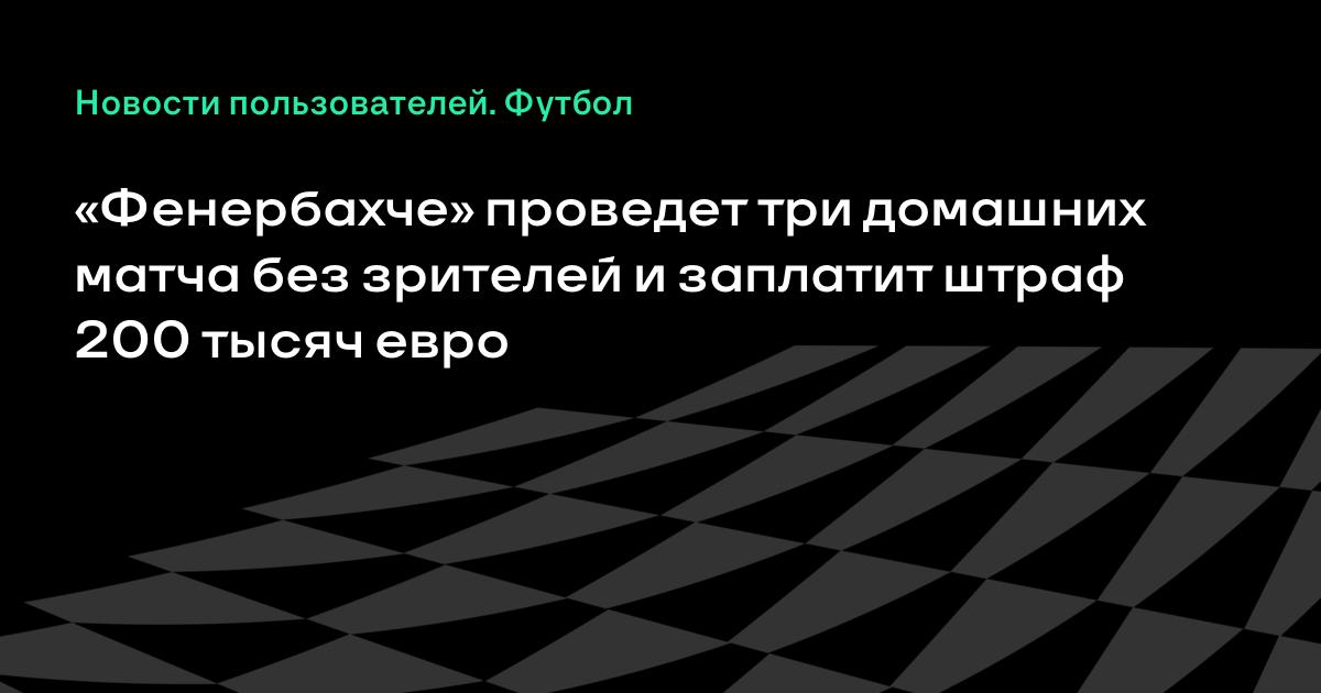 «Фенербахче» проведет три домашних матча без зрителей и заплатит штраф 200 тысяч евро
