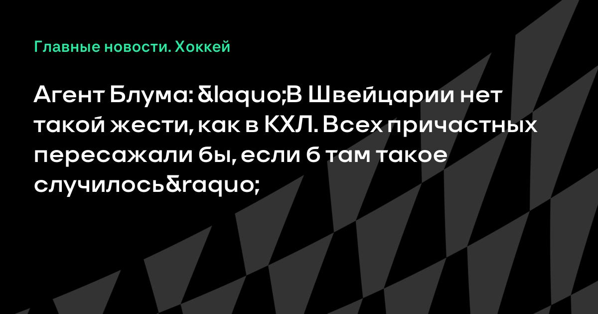 Агент Блума: «В Швейцарии нет такой жести, как в КХЛ. Всех причастных пересажали бы, если б там такое случилось»