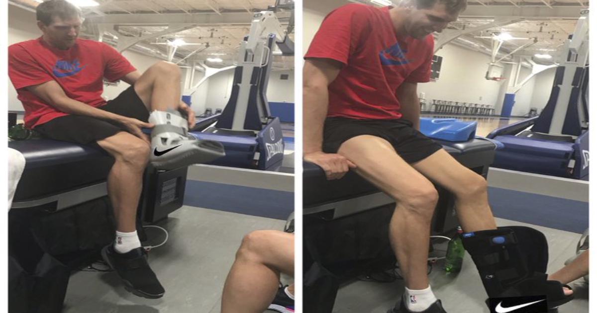 39-летний форвард «Далласа» Дирк Новицки, который перенес операцию на левой лодыжке, похвастал новыми защитными ботинками «от Nike».