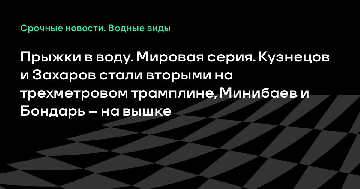 Прыжки в воду. Мировая серия. Кузнецов и Захаров стали вторыми на трехметровом трамплине, Минибаев и Бондарь – на вышке