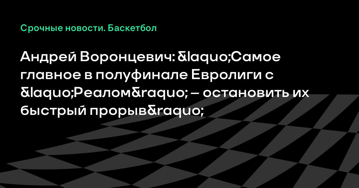 Форвард ЦСКА Андрей Воронцевич заявил, что самое главное в полуфинале Евролиги с «Реалом» будет остановить быстрый прорыв соперника и показать хороший баскетбол от защиты.